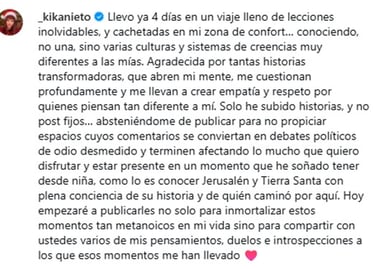Sin embargo, este fenómeno no se limita al caso venezolano. Hoy en el mundo observamos cómo se legitiman discursivamente las posiciones de la extrema derecha. La complicidad de sectores del cristianismo, de dirigentes políticos y también de los llamados “influencers”, todos ellos reaccionarios, no solamente guardaron silencio frente al genocidio en Gaza, peor aún, ocultan que existe el genocidio y promocionan abiertamente la cultura sionista. Esta estrategia no es espontánea ni asilada; durante todo el año 2025 los asesinos de Israel desplegaron una campaña sistemática para blanquear su imagen en redes sociales; decenas de influencers de distintos países fueron invitados a viajes completamente pagos, financiados con millones de euros, con el objetivo de construir una narrativa favorable sobre el criminal de Benjamín Netanyahu, el gobierno israelí y sobre este país[7] mientras se pretendía ocultar y negar la hambruna que pasan miles de personas en la franja de Gaza. En Colombia se replicó el mismo libreto con figuras-influencers de derecha uribistas que lastimosamente son seguidas por millones de personas, recibieron patrocinio total de la embajada de Israel en Colombia, pagandoles viajes con el objetivo que cuando llegaran a su país de origen debían compartir en sus redes la “maravillosa experiencia”. Un caso emblemático de esta operación propagandística es la publicación y el mensaje de Kika Nieto en su red social Instagram: